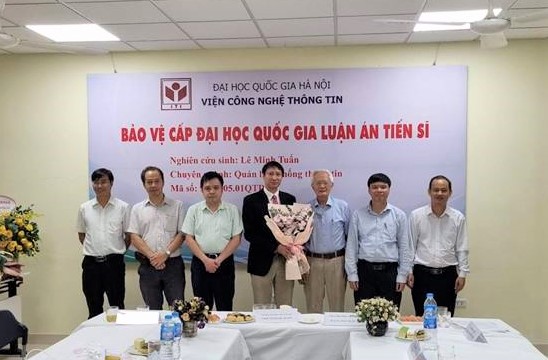 Ngày 06/10/2022 tại phòng 503 Nhà E3 Viện Công nghệ Thông tin, Đại học Quốc gia Hà Nội đã diễn ra Lễ bảo vệ luận án tiến sĩ cấp Đại học Quốc gia của nghiên cứu sinh Lê Minh Tuấn với đề tài “Nghiên cứu đề xuất cải tiến thuật toán lập lịch và ứng dụng”, chuyên ngành Quản lí hệ thống thông tin. Luận án được thực hiện dưới sự hướng dẫn khoa học của PGS.TS. Lê Hoàng Sơn (Viện Công nghệ Thông tin, ĐHQGHN) và TS. Vũ Như Lân (Trường Đại học Thăng Long). Sau đây là một số hình ảnh của buổi bảo vệ Luận án.