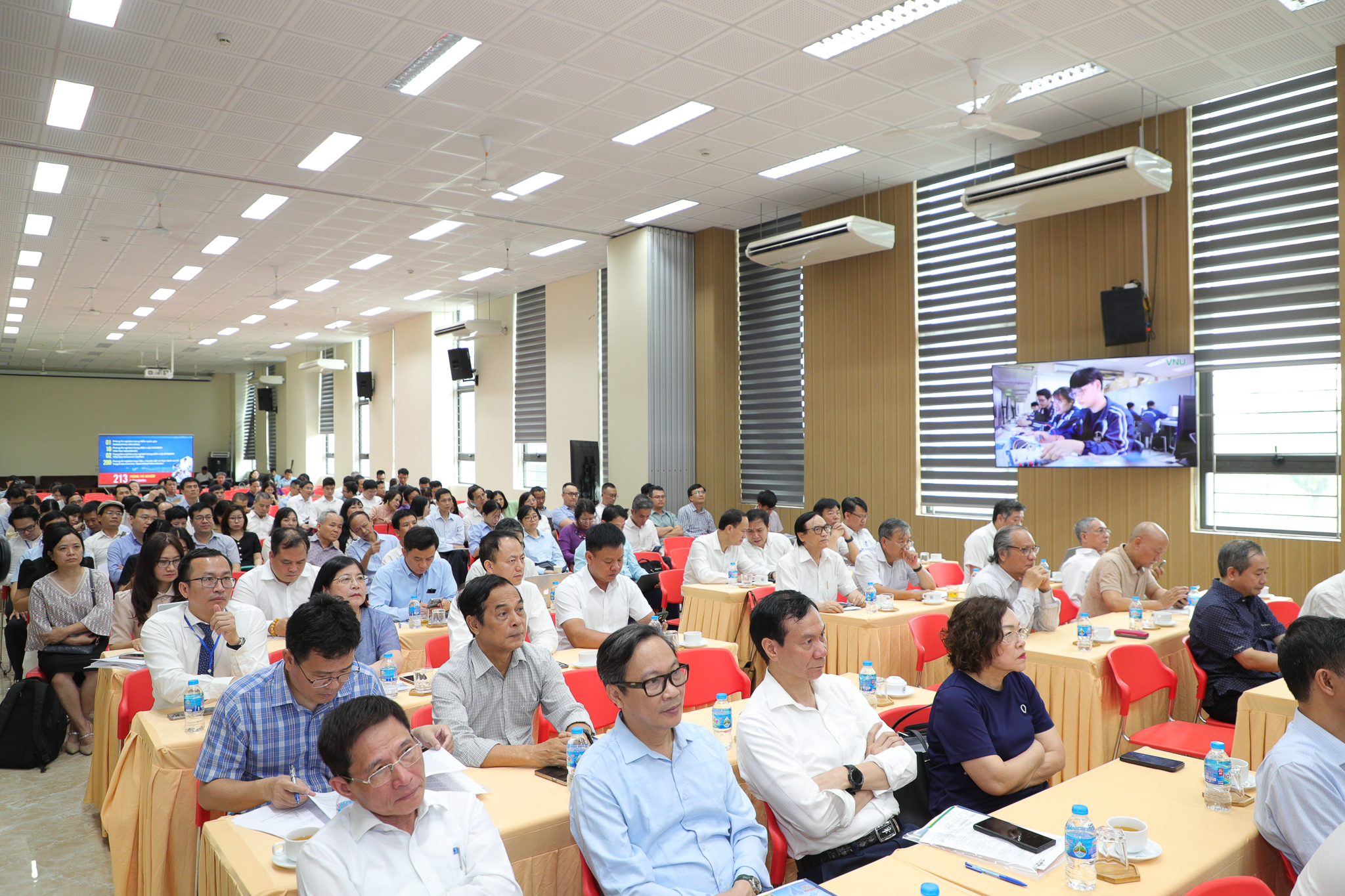 Trưởng ban Khoa học & Công nghệ Trần Thị Thanh Tú đã trình bày báo cáo về hoạt động KH&CN và Chính sách phát triển KH&CN của ĐHQGHN. Trong những năm vừa qua, ĐHQGHN đã xây dựng quy hoạch hệ thống tổ chức KH&CN và có kế hoạch đầu tư phát triển các tổ chức nghiên cứu mạnh. ĐHQGHN là một trong những đơn vị đứng đầu cả nước về số lượng và chất lượng các công trình khoa học với tỷ lệ công bố thuộc danh mục Scopus gia tăng trung bình khoảng 16%/năm và chiếm khoảng 10% tổng số công bố quốc tế của cả nước. Số lượng công bố thuộc danh mục WoS/SCOPUS của ĐHQGHN tăng dần theo các giai đoạn. Các nhà khoa học của ĐHQGHN đóng góp gần 2.000 bài báo theo chuẩn ISI và SCOPUS mỗi năm, gần 100 sáng chế, giải pháp hữu ích, 15 sản phẩm chuyển giao và khởi nghiệp. Đây là nền tảng giúp gia tăng uy tín của ĐHQGHN trong tư vấn chính sách cho các cơ quan Trung ương, hợp tác với các đối tác triển khai các nhiệm vụ KH&CN phục vụ nhu cầu phát triển của địa phương, chuyển giao kết quả nghiên cứu cho doanh nghiệp.