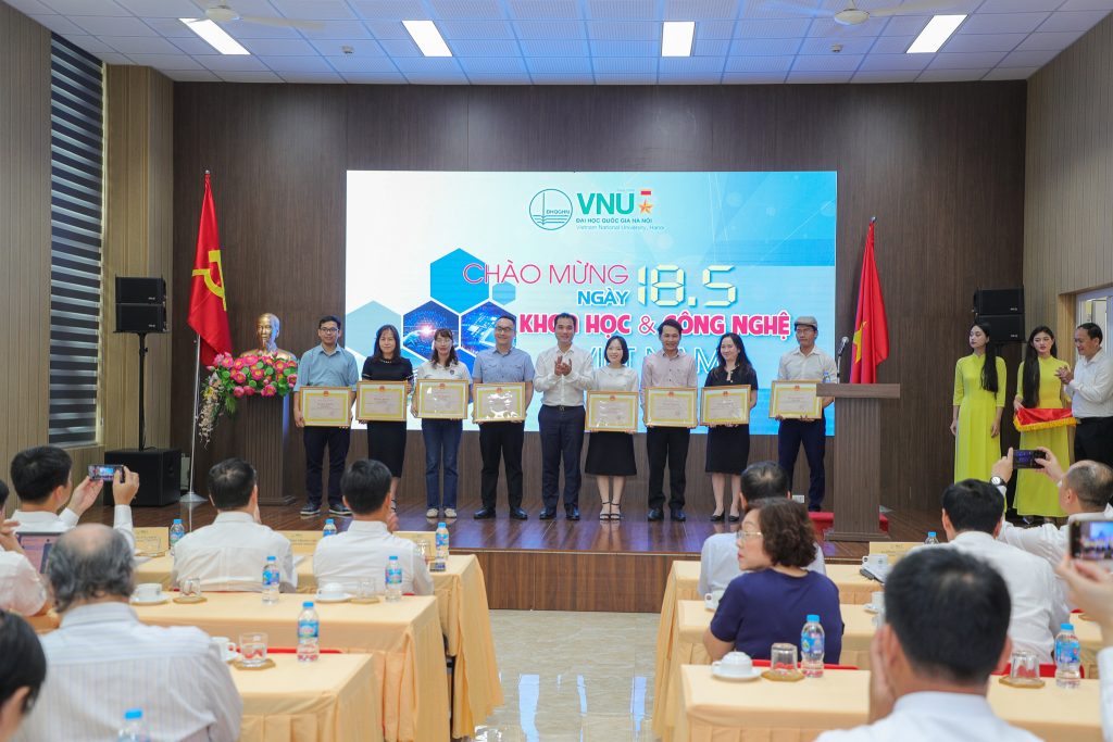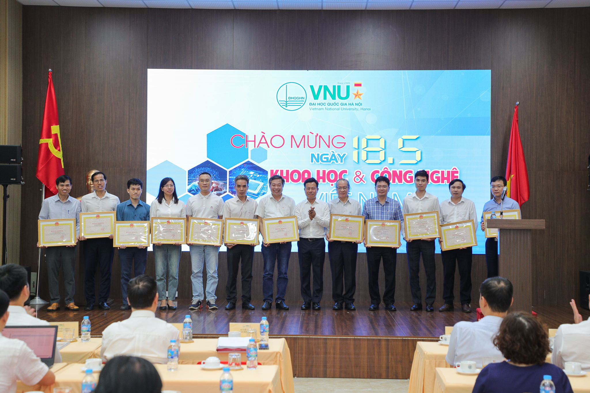Cũng trong khuôn khổ buổi lễ, lãnh đạo ĐHQGHN đã trao Bằng khen của Giám đốc ĐHQGHN cho các nhà khoa học đạt thành tích xuất sắc trong công tác nghiên cứu khoa học và đổi mới sáng tạo năm 2023.
