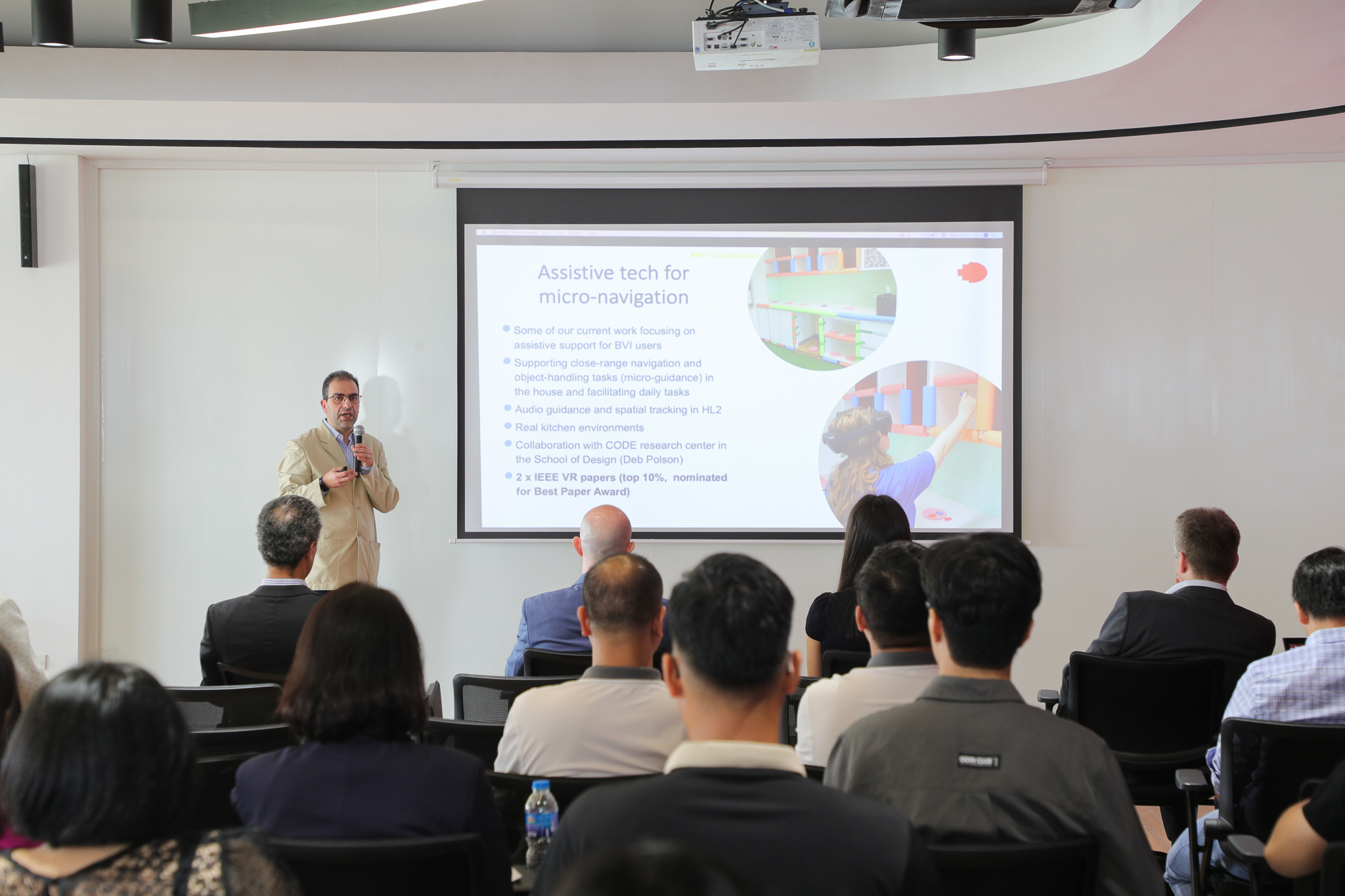 Tọa đàm thu hút các báo cáo về chủ đề trí tuệ nhân tạo, thiết kế vi mạch và công nghệ bán dẫn do các nhà khoa học đến từ ĐH RMIT và ĐHQGHN trình bày. Trong mảng AI, các chủ đề tham luận bao gồm từ học sâu (deep learning), khai thác dữ liệu (data mining), đến các ứng dụng AI trong ngành y tế, dự báo thời tiết và các xu hướng nghiên cứu tiềm năng trong AI… Trong khi đó, các bài tham luận trong mảng bán dẫn xoay quanh khoa học vật liệu, thiết kế vi mạch, tích hợp Internet vạn vật trong công nghệ bán dẫn…