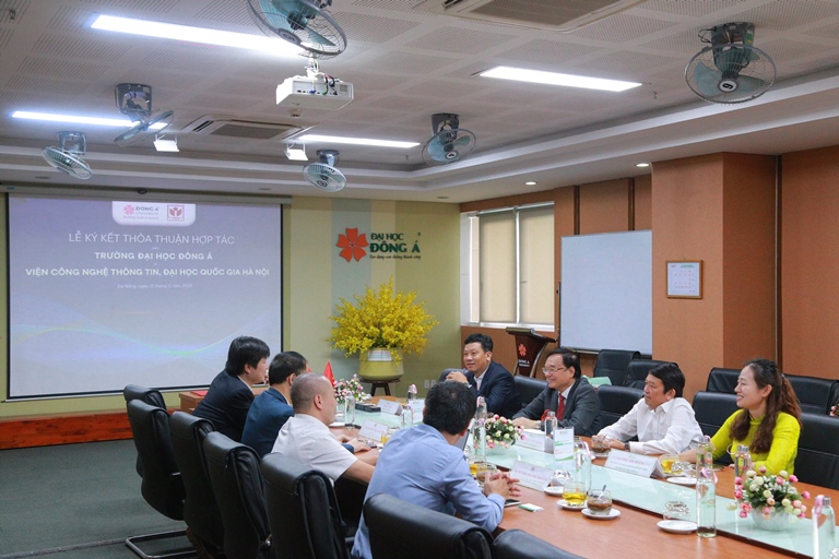 Within the framework of the cooperation agreement, the Institute of Information Technology will support postgraduate training for staff and lecturers of Dong A University, and will annually accept students from Dong A University to internship. The Information Technology Institute will also share information about scholarships from Vietnam National University, Hanoi and scholarships from international projects to attract and support postgraduate training funds for University staff and lecturers of Dong A University. In addition, the Information Technology Institute will coordinate with Dong A University to organize short-term training classes for lecturers and students on core technologies such as: Artificial Intelligence, Information Security, Digital transformation, Internet of Things, Blockchain Technology, Big Data, Cloud Computing,…