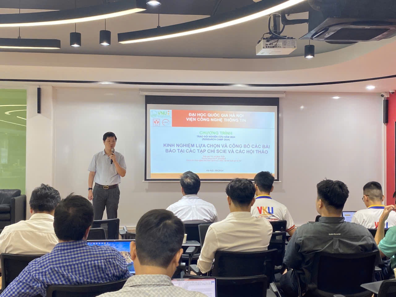 On September 9 and 10, 2024, the Information Technology Institute, Vietnam National University, Hanoi, organized the 2024 Research Exchange Program (Research Camp 2024) at the VNU-RMIT Innovation Space, located in the VNU Urban Area in Hoa Lac. Participants of the program included students from partner institutions of the Information Technology Institute, such as the University of Information and Communication Technology (VKU), University of Da Nang; the University of Information and Communication Technology (ICTU), Thai Nguyen University; and Dong A University (UDA). The purpose of Research Camp 2024 was to create an academic exchange space, enhance research capabilities, and promote scientific publications between the Information Technology Institute and its partners.