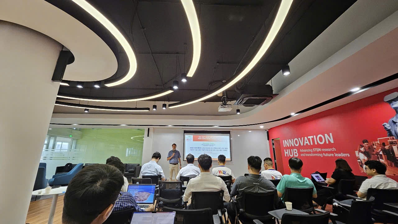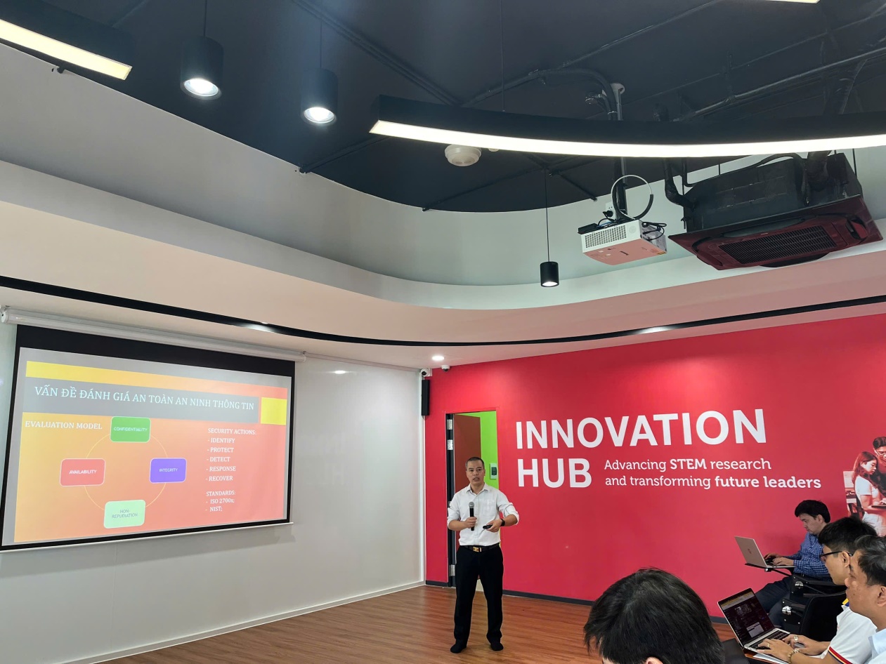 The program’s content was rich and diverse, focusing on modern topics that are also the main research directions of the Information Technology Institute, including Artificial Intelligence, Semiconductor Technology, Information Security, and Digital Transformation. New and modern research directions such as Generative Artificial Intelligence, AI chip technology, and national data sharing platforms were also thoroughly presented by experts, along with in-depth analyses of their applicability and implementation in practice. Interspersed with the presentations on research directions were shares on how to write project proposals for national and international projects, experiences in selecting and publishing articles in journals indexed by WoS/Scopus, guidelines for writing Scopus articles to meet publication standards, and experiences in implementing information security projects that meet standards.