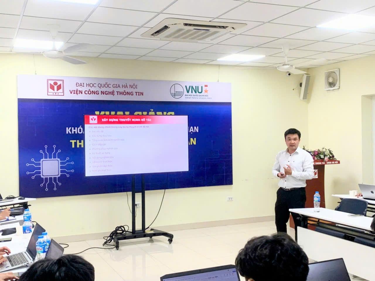 In his opening speech, Associate Professor Le Hoang Son, Deputy Director of the Information Technology Institute, shared: “Organizing the 2024 Research Exchange Program opens up many opportunities for us to promote research and development in the fields of information technology and semiconductor technology, while enhancing practical and research skills. The program includes specific exchanges from experts along with practical guidance aimed at building project proposals and training for international publications, fostering sustainable collaboration between the Information Technology Institute and universities.”