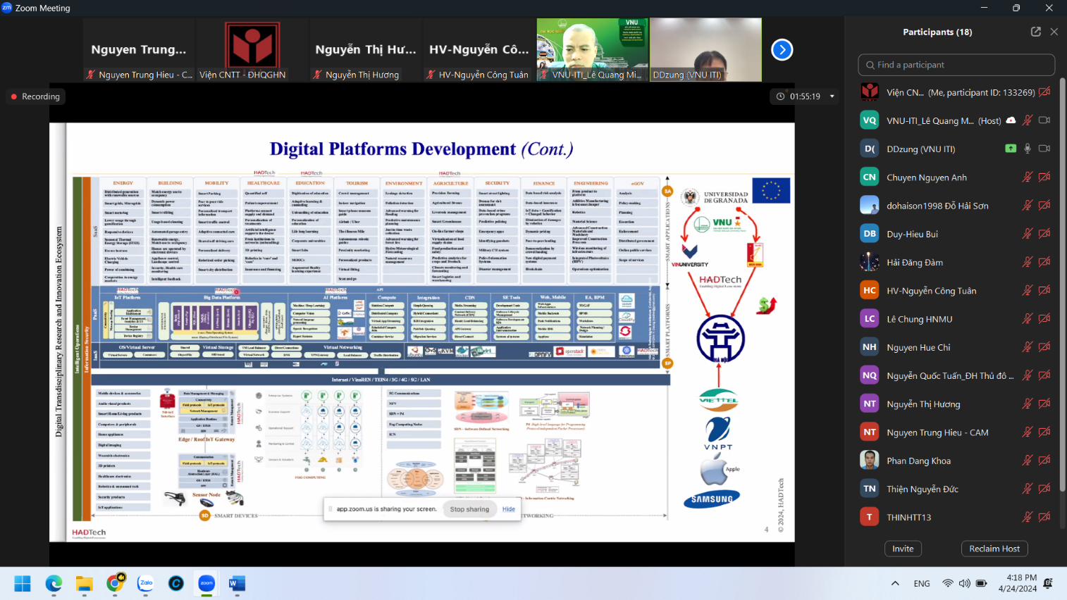The second lesson of the seminar is a presentation on new interdisciplinary and cross-disciplinary research areas and innovation ecosystems in the field of digital technology in the present and future by Dr. Dinh Van Dung, former Deputy Director of the Information Technology Institute, presented. The speaker presented an overall general picture, on that basis mentioned ideas for developing applications to create multi-disciplinary and interdisciplinary products about digital technologies, which are the right choice when Large enterprises and research institutes aim to create industrial products with a high basic research content. The presentation emphasizes digital technologies such as AI, IoT, BigData in developing advanced technology products in fields such as Health, Agriculture, and Industrial Production.