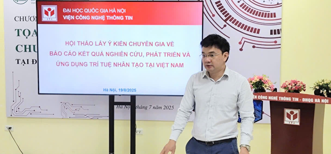 Sáng ngày 19/08/2025, Viện Công nghệ Thông tin (CNTT), Đại học Quốc gia Hà Nội đã tổ chức Hội thảo lấy ý kiến chuyên gia cho kết quả khảo sát sơ bộ về nhiệm vụ xây dựng “Báo cáo thường niên (BCTN) về Trí tuệ nhân tạo tại Việt Nam” với mục tiêu là tổng hợp kết quả nghiên cứu, phát triển và ứng dụng trí tuệ nhân tạo (AI) tại Việt Nam giai đoạn 2020 – 2025 nhằm tư vấn chính sách nghiên cứu và phát triển về AI tại ĐHQGHN nói riêng và Việt Nam nói chung. Hội thảo này là sự kiện tiếp nối Hội thảo đầu tiên ngày 11/06/2025 tại Viện CNTT về lấy ý kiến chuyên gia cho dự thảo thiết kế nghiên cứu (Link bài viết). Sau hơn 2 tháng triển khai lấy số liệu từ các doanh nghiệp cung cấp và ứng dụng AI cũng như tại các Trường, Viện có tham gia đào tạo Đại học và Sau Đại học về AI tại Việt Nam, hội thảo lần này là cơ hội để đánh giá lại kết quả thu thập để từ đó định hướng việc thu thập dữ liệu bổ sung cũng như dự thảo các khuyến nghị chính sách.