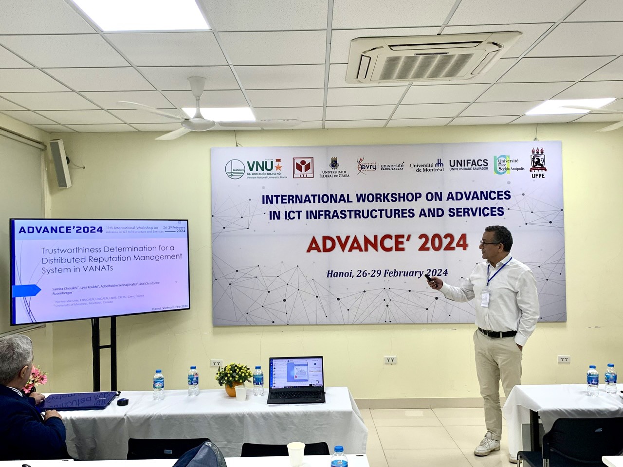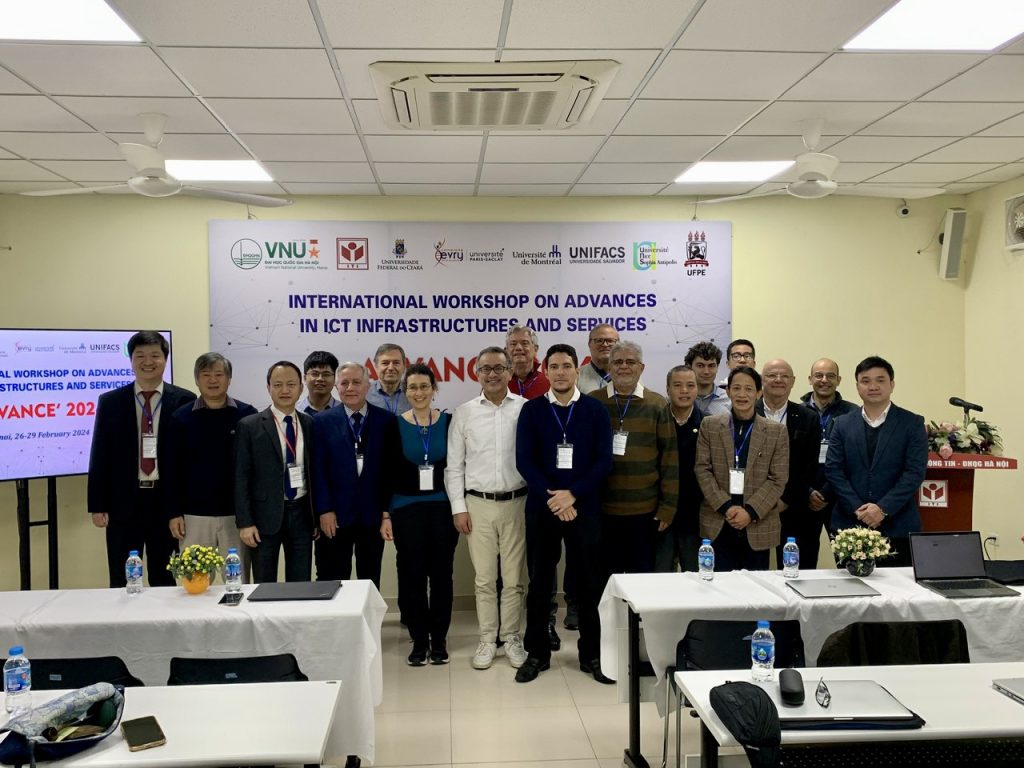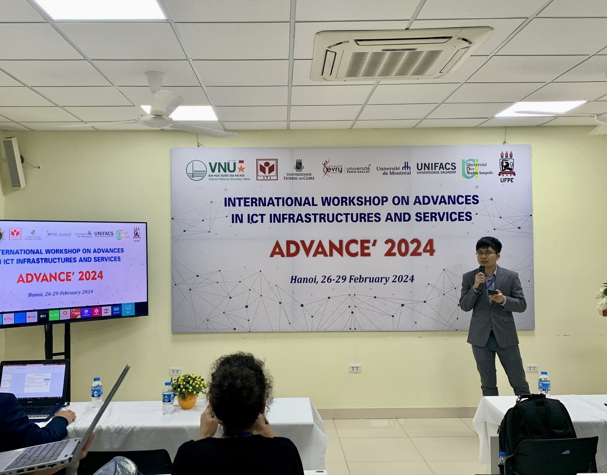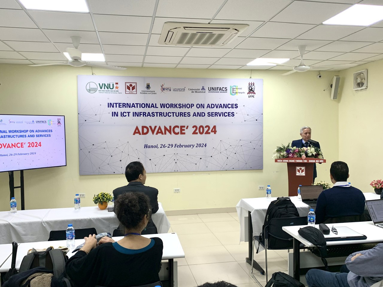 Ngày 26-28/2/2024, Viện Công nghệ Thông tin – Đại học Quốc gia Hà Nội tổ chức Hội thảo khoa học quốc tế lần thứ 11 về “Những tiến bộ trong hạ tầng và dịch vụ Công nghệ Thông tin – Truyền thông” (International Workshop on Advances in ICT Infrastructures and Services – ADVANCE 2024). Tham dự và trình bày báo cáo tại Hội thảo gồm có các chuyên gia, các nhà khoa học đến từ Cộng hòa Pháp, Canada, Brazil và Việt Nam. Hội thảo là diễn đàn để các nhà quản lý, các tổ chức, doanh nghiệp và chuyên gia công nghệ, nhà khoa học hoạt động trong lĩnh vực Công nghệ Thông tin và Truyền thông gặp gỡ, trao đổi, nắm bắt về hiện trạng, giới thiệu về các hoạt động và kết quả nghiên cứu, tìm kiếm cơ hội hợp tác, giới thiệu những giải pháp kỹ thuật công nghệ mới, liên kết đẩy mạnh phát triển ứng dụng Công nghệ Thông tin và Truyền thông phục vụ cuộc sống.