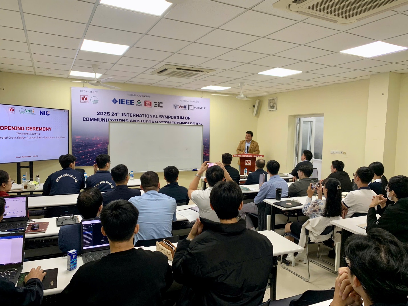 Sáng ngày 07 tháng 11 năm 2025, tại Phòng 505, Nhà E3, Viện Công nghệ Thông tin – Đại học Quốc gia Hà Nội (ĐHQGHN) đã tổ chức Lễ khai giảng khóa đào tạo “Thiết kế và Layout Vi mạch tương tự (Analog Integrated Circuit Design & Layout).