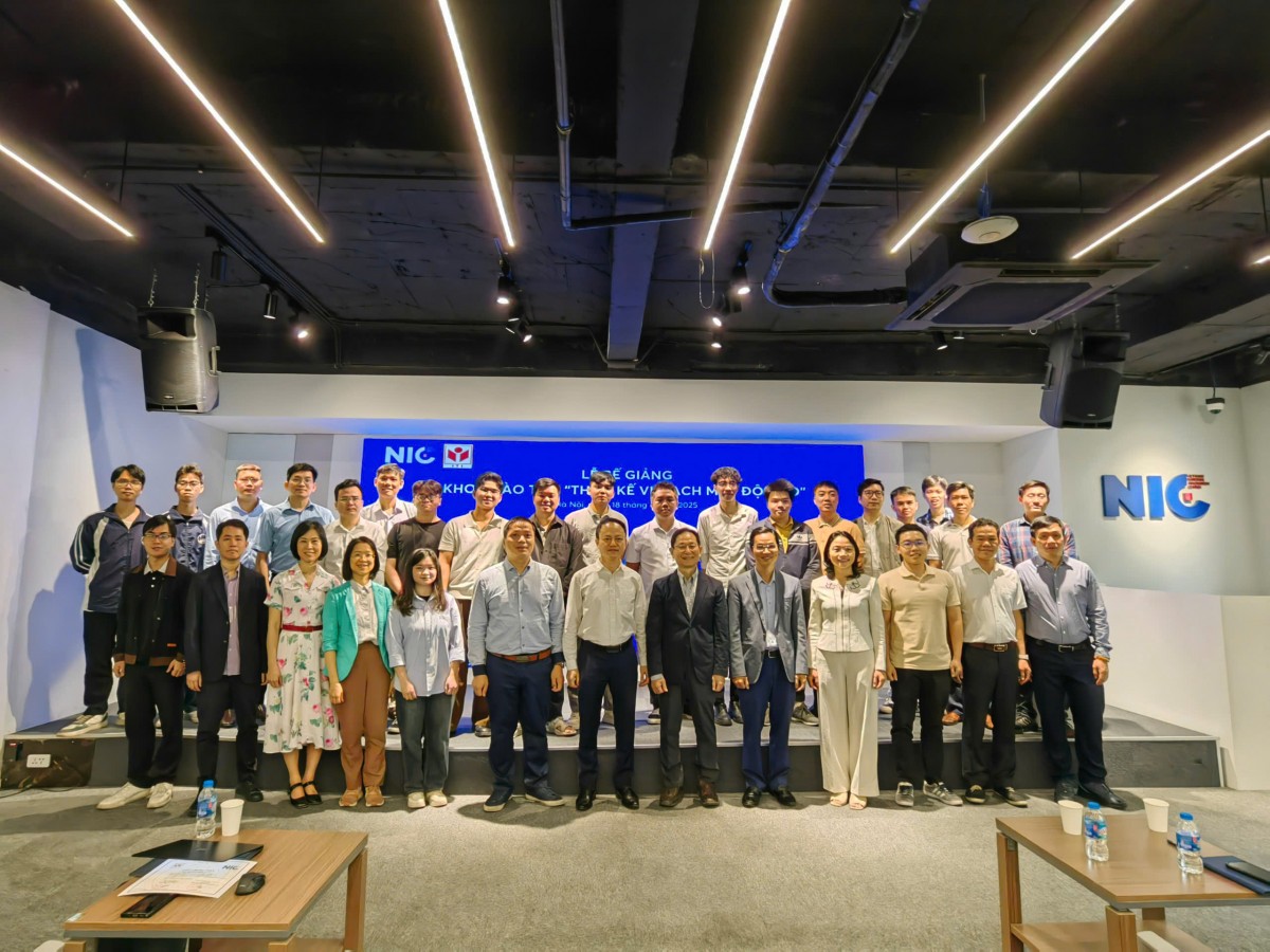Viện CNTT đã tổ chức thành công, vượt chỉ tiêu đề ra các khóa đào tạo ngắn hạn về Ứng dụng AI và Thiết kế vi mạch bán dẫn. Đặc biệt, từ ngày 7/11/2025 đến ngày 18/11/2025, Viện CNTT đã phối hợp với Trung tâm Đổi mới sáng tạo Quốc gia (NIC), Bộ Tài chính và Đại học Genova (Cộng hòa Ý) tổ chức khóa đào tạo “Thiết kế và Layout vi mạch tương tự” cho gần 40 giảng viên, sinh viên, nghiên cứu viên đến từ các trường đại học, doanh nghiệp nhằm phát triển nguồn nhân lực chất lượng cao phục vụ ngành công nghiệp bán dẫn Việt Nam.