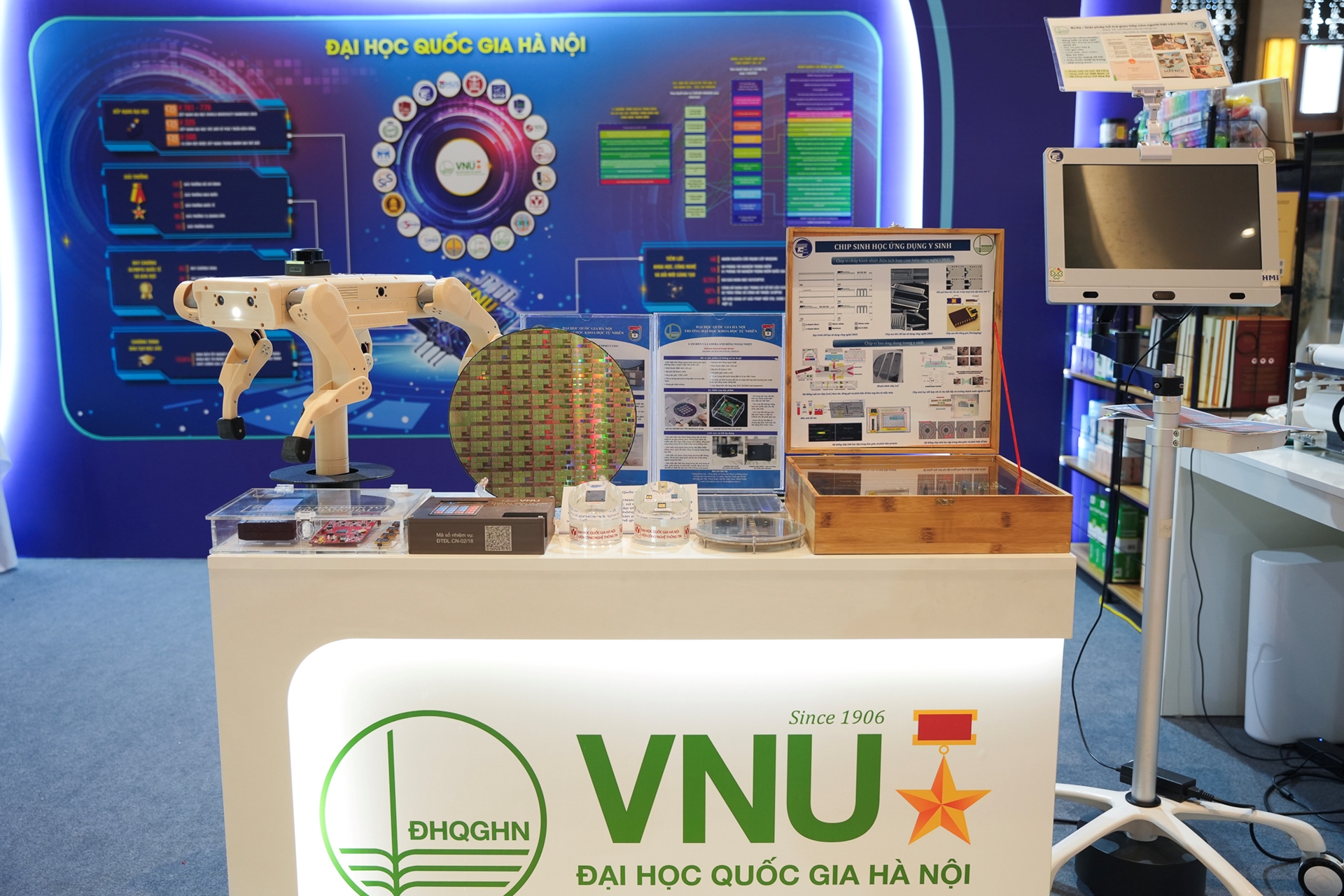 Viện Công nghệ Thông tin tham gia triển lãm thành tựu đất nước “80 năm hành trình Độc lập – Tự do – Hạnh phúc” diễn ra từ 28/8 đến 15/9 tại Trung tâm Triển lãm Quốc gia với chùm 5 sản phẩm chip bán dẫn.