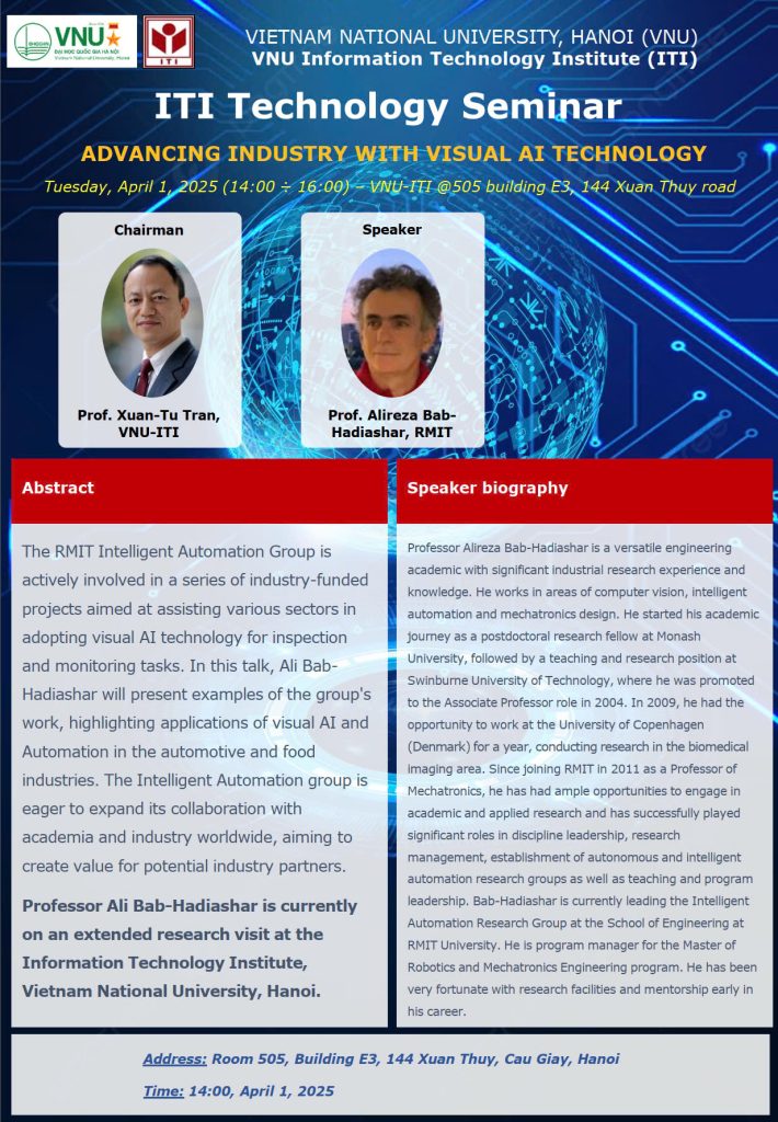 👉 GS. Ali Bab-Hadiashar hiện đang có chuyến thăm nghiên cứu dài hạn (3 tháng) tại Viện Công nghệ Thông tin, Đại học Quốc gia Hà Nội.