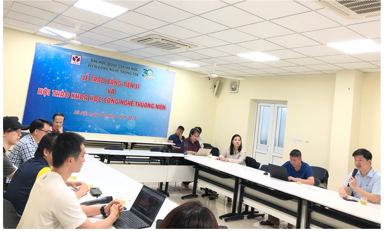 Ngày 21/7/2023, Viện Công nghệ Thông tin, Đại học Quốc gia Hà Nội tiếp đón GS. Shih-Chia Huang, Đại học Công nghệ Quốc gia Đài Bắc (Taipei Tech) và là Chapter Chair của hiệp hội công nghệ truyền thông IEEE phân nhánh Đài Bắc cùng với các cán bộ nghiên cứu và nghiên cứu sinh, thực tập sinh sau tiến sĩ đến trao đổi, hợp tác trong lĩnh vực trí tuệ nhân tạo (AI) ứng dụng. Tiếp đoàn, về phía Viện Công nghệ Thông tin có PGS. TS. Trần Xuân Tú – Viện trưởng và PGS.TS. Lê Hoàng Sơn – Phó Viện trưởng cùng các nhà khoa học, nghiên cứu sinh và học viên tham dự.