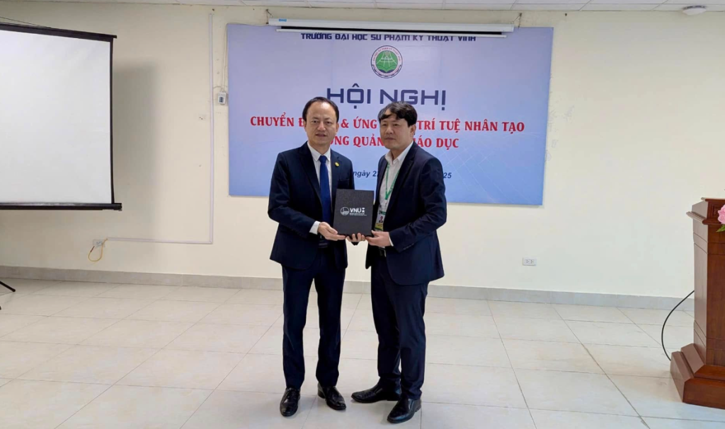 Ngày 22/2/2025, Đoàn công tác của Viện Công nghệ Thông tin, Đại học Quốc gia Hà Nội đã thăm và làm việc với Trường Đại học Sư phạm Kỹ thuật Vinh. Nhân dịp này, hai đơn vị đã phối hợp tổ chức Hội nghị Chuyển đổi số và Ứng dụng Trí tuệ nhân tạo trong Quản lý giáo dục.