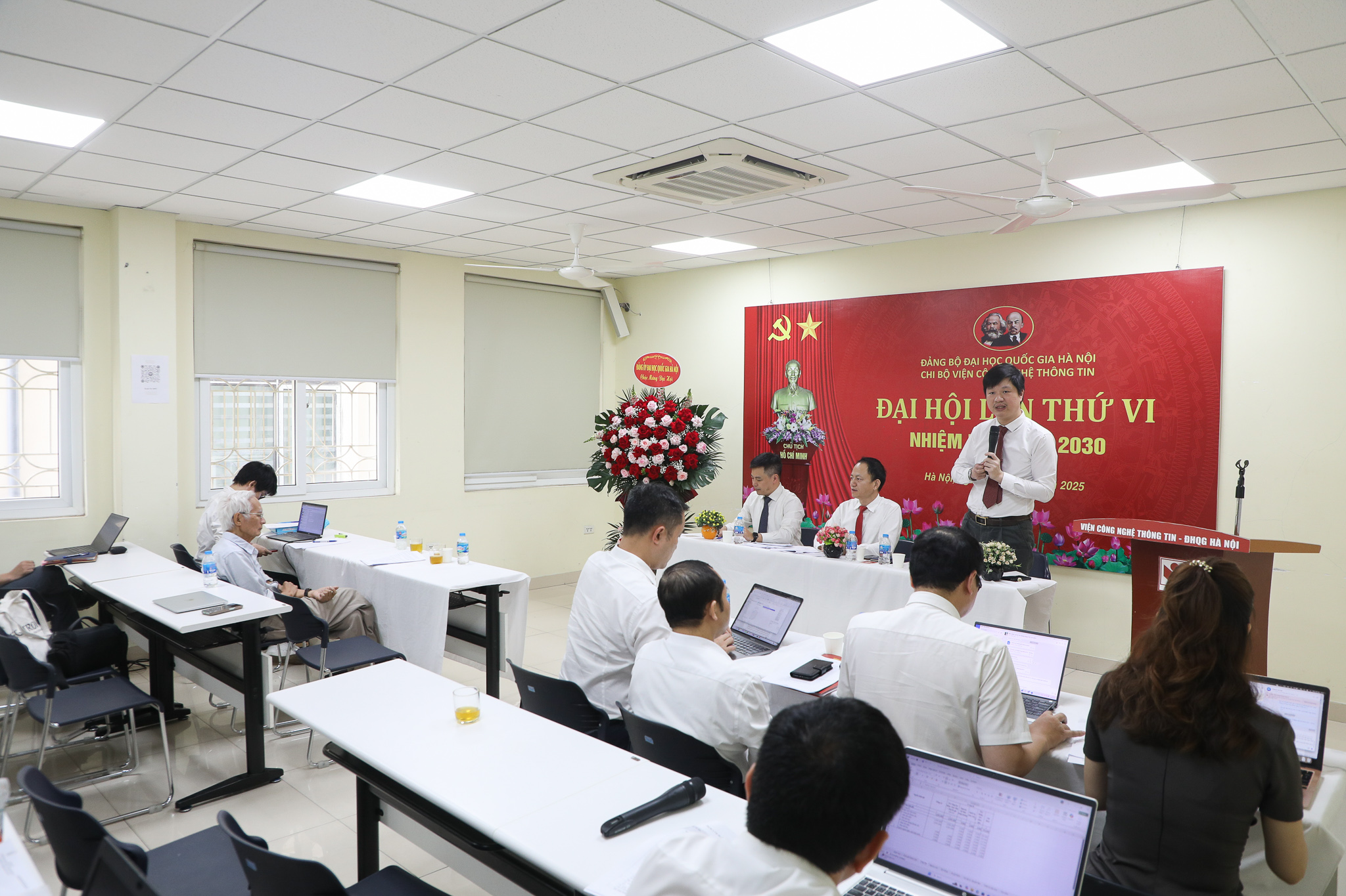 Đại hội Chi bộ Viện CNTT lần thứ VI đã bầu ra Ban Chi ủy nhiệm kỳ 2025–2030 gồm 3 đồng chí, theo đó, đồng chí Trần Xuân Tú được tín nhiệm tái cử giữ chức Bí thư Chi bộ. Đồng thời, Đại hội nhất trí cử đoàn đại biểu tham dự Đại hội Đảng bộ ĐHQGHN lần thứ VII.